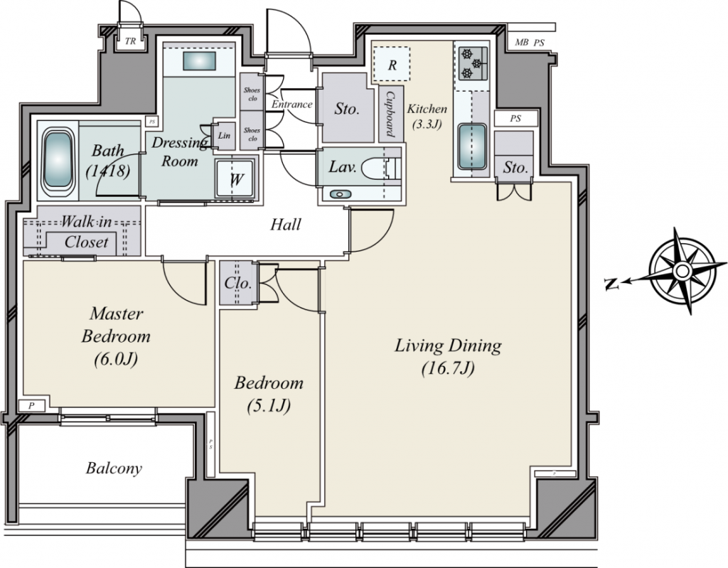 | 面積(平米) | 専有面積:74.92㎡ バルコニー:6.50㎡ |